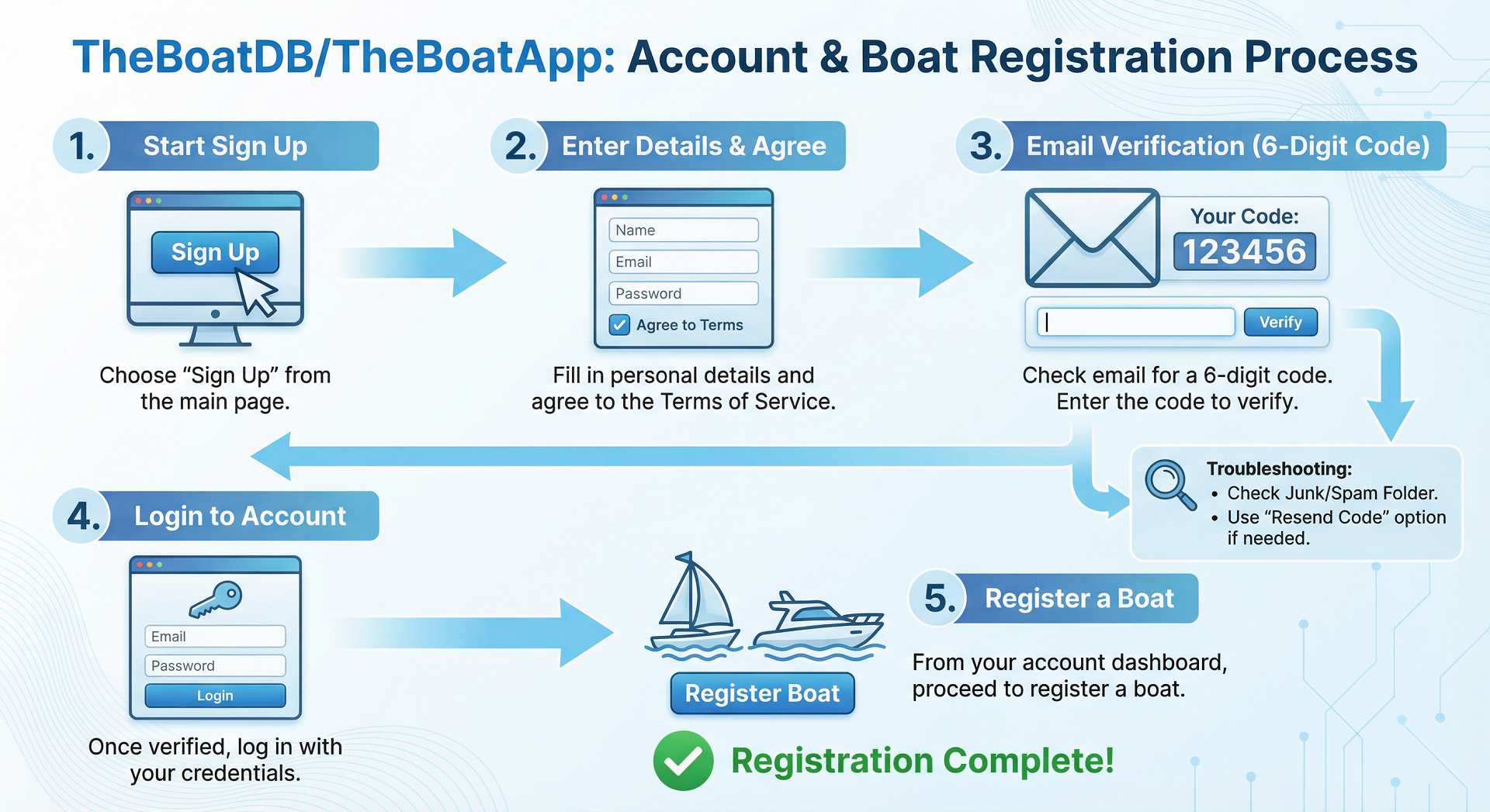 You are now registered and ready to go! Please log in and proceed to Register your Boat.